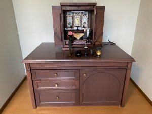 お持ちのお仏壇に合わせて机と収納家具を作りました。