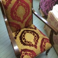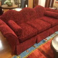 赤色の張り替え生地でソファー張り替...