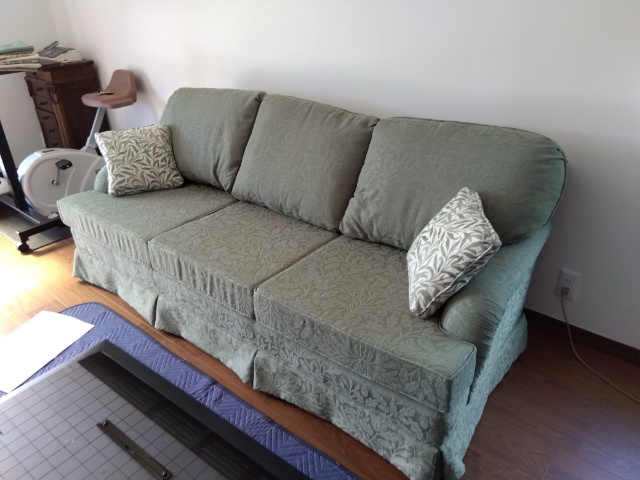 ですのでソファーにはアクセントとしてウィリアムモリスのアクセサリークッションを2個お作りしました。